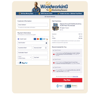 Hit the “Buy Now” button below to go to our secure checkout page. Enter your information, complete your order, and you’ll receive instant access to the full Ted’s Woodworking program—ready to start building right away!